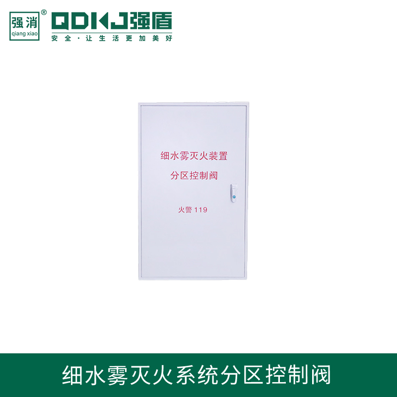 高壓細水霧分區控制閥箱是由電動截止閥、手動球閥、壓力控制器、氣壓表、殼體及聯接管材等構成。關鍵作用是接受消防報警系統控制板的操縱數據信號后,打開相對系統分區的電動截止閥向防護區釋放出來細水霧執行救火。在噴嘴一切正常噴放細水霧時由壓力控制器向消防報警系統控制板傳出意見反饋數據信號。