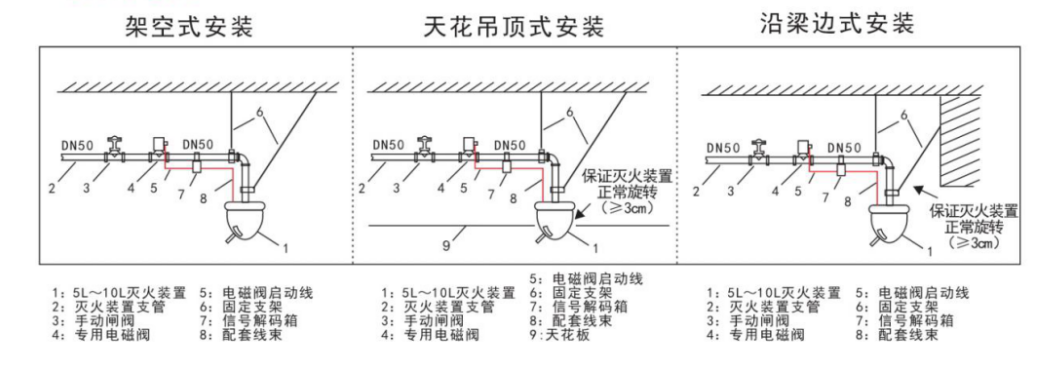 5、電磁閥與消防水炮的水管越短越好,但之間的長度不能小于10CM。